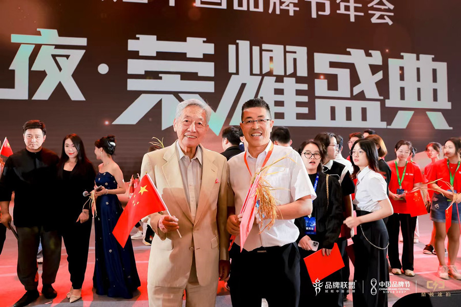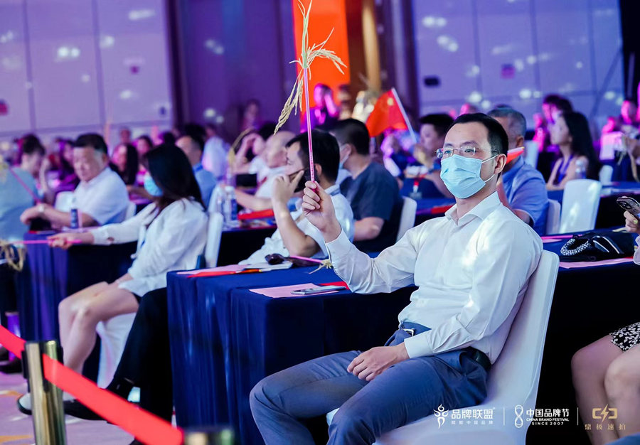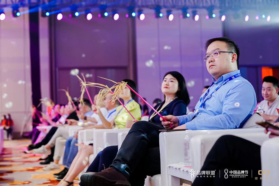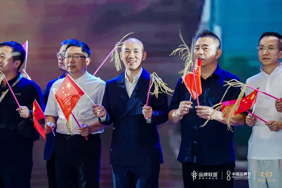 中部文化网讯 2022年8月8日晚,长沙湘江之滨,第十六届中国品牌节年会在这里隆重举行荣耀盛典颁奖典礼。全体嘉宾一手拿着小红旗,一手握着金灿灿的“狗爬崖生态米”稻穗,高声合唱《浏阳河》。