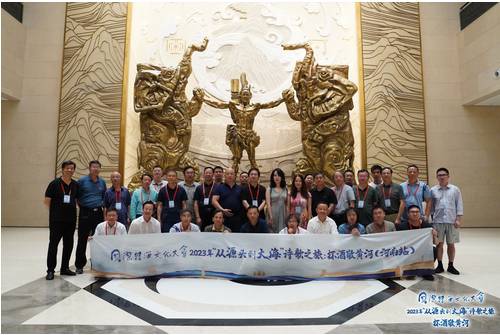 7月29-30日,国际诗酒文化大会2023年“‘从源头到大海’诗歌之旅:杯酒敬黄河”来到河南郑州,活动邀请来自全国各地的诗人、作家、文化学者、艺术家走进河南博物院,开展“诗酒河南”主题研讨会、黄河文化文学创作采风等活动,共同探寻黄河诗酒文化流脉,挖掘黄河文化蕴含的时代价值,以诗酒文化为黄河生态经济带发展注入新活力。活动由中国作协《诗刊》社、河南省文学艺术界联合会、河南省作家协会、河南省诗歌学会、泸州市人民政府主办;中国诗歌学会、中国南方油画山水画派研究院战略合作;中国诗歌网、泸州老窖股份有限公司、中视华凯传媒集团等承办。