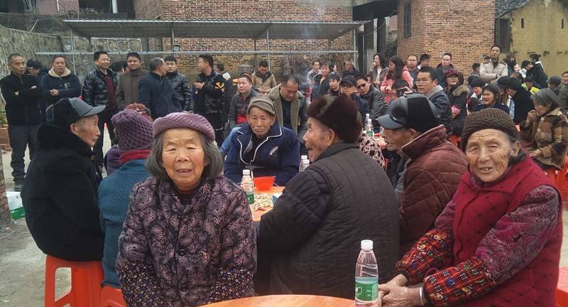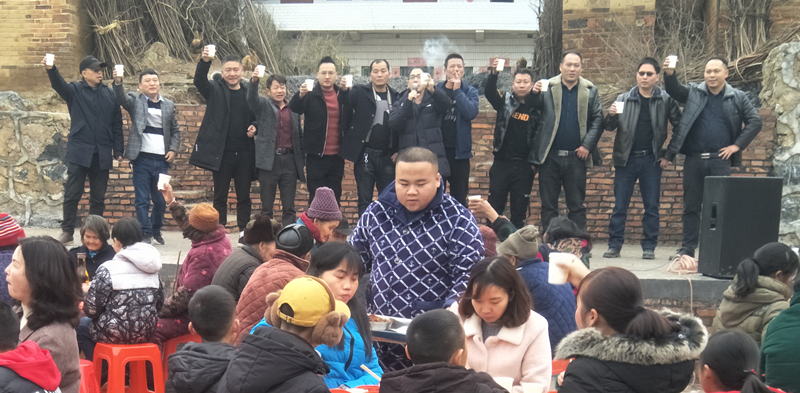 潮水府公益事务堂的部分发起人为乡亲们敬新春喜酒。