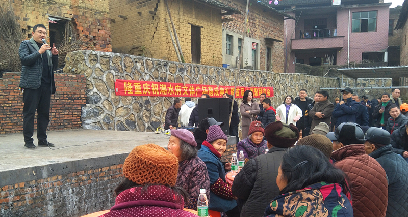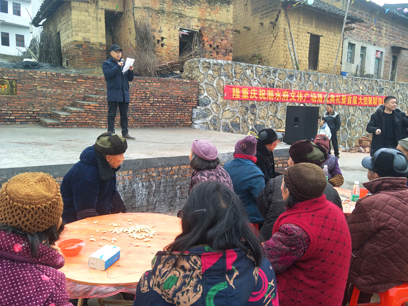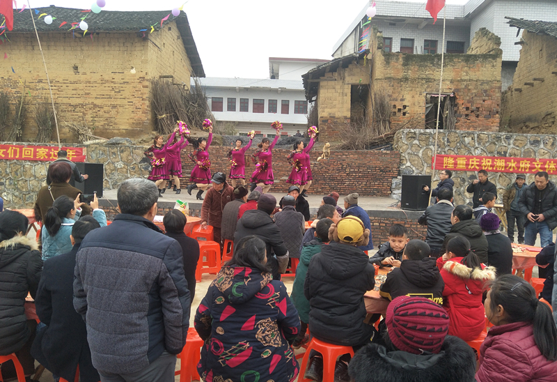 2020年1月21日,新落成的湖南省邵阳县黄亭市镇烟山村潮水府院落文体广场上,歌声悠扬,烟花欢啸,首届潮水府院落春晚,在这里正式举行。