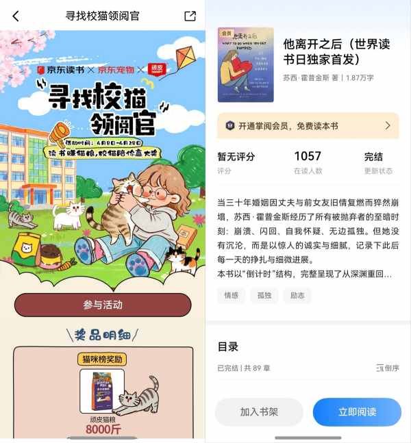 此外,书旗小说的“阅读点亮福利”、京东读书的“寻找校猫领阅官”、晋江小说阅读的专属头像以及掌阅的新书首发,都在用各自的方式,为这份沉浸体验增添惊喜。
