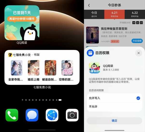 • 贴心提醒,不错过每一刻:七猫免费小说的桌面服务卡片可以一键领取“每日赠币”。面向鸿蒙端用户的免广告阅读福利(4月24日截止),加上手机与平板之间的应用接续无缝流转,阅读不中断,体验更专注。